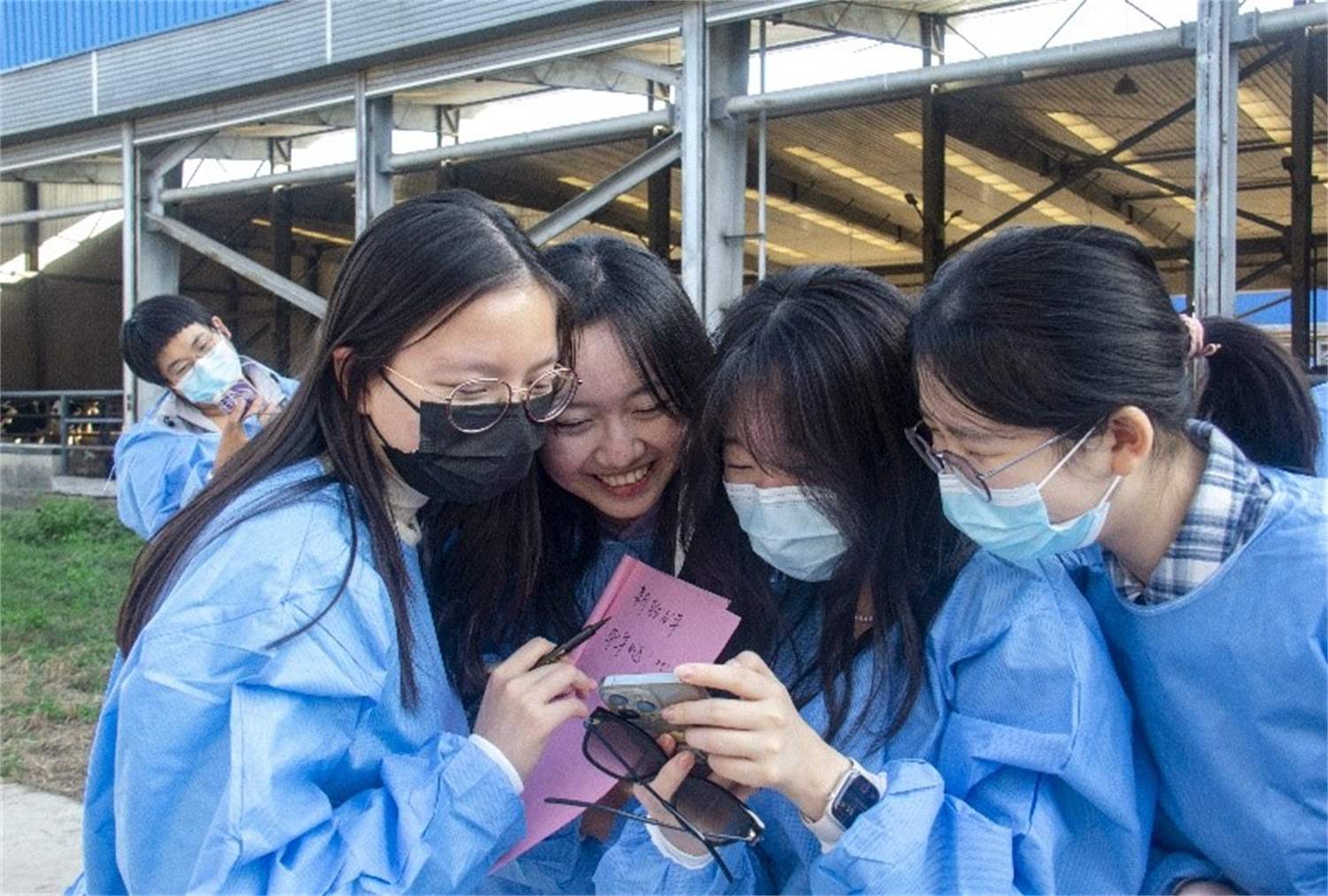 窦店村恒升畜牧养殖中心成立于2006年8月9日,是京郊存栏最大、养殖水平最高的肉牛养殖基企业。同学们认真聆听了工作人员对现代化养殖与畜牧业经济的介绍和讲解,了解了传统农业升级、现代肉牛养殖与科技创新以及循环农业集体经济发展历程等,并近距离参观了现代化牛舍,亲自操作机械化饲料车,发解肉牛喂养全过程。参访交流期间,同学们兴奋地表示这是第一次直接直观、与时俱进地认识到智能化设备如何代替人类劳动以及新兴生产劳动方式,了解到了恒升畜牧养殖中心如何通过对创新技术的科学使用以达到养殖事业的高品质、高产能与高质量,发展成为当今国内最优质的畜牧养殖基地之一。