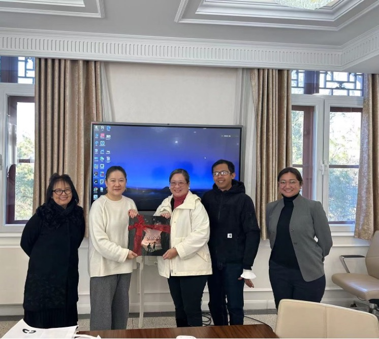 会谈结束后,北京大学菲律宾语专业黄轶老师与菲律宾大学代表、菲律宾卡加延省农村发展委员会主任马贝尔女士以及菲律宾大学孔子学院中方院长施雪琴老师互赠礼物,各方表示,非常期待未来加强彼此间的各种交流。