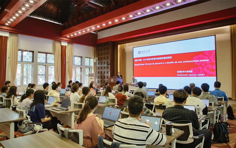 2024年5月21日,巴西驻华大使高望(Marcos Galvão)应邀访问北京大学,在结束与北京大学校领导的会见后,前往外国语学院民主楼208会议室,以“巴西-中国:五十年合作历程与加强互鉴的挑战”为题发表演讲。