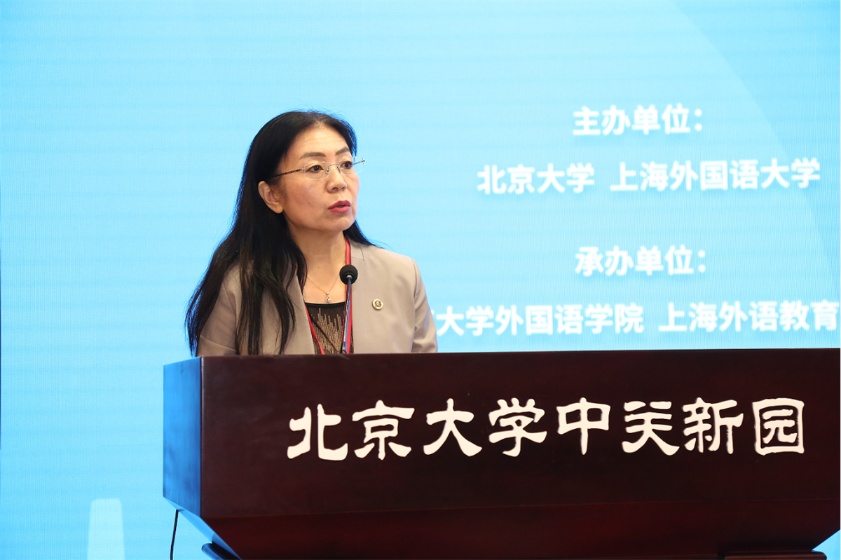 北京大学副校长宁琦、大连外国语大学校长刘宏、浙江越秀外国语学院校长修刚、上海外国语大学教授赵蓉晖作主旨演讲。