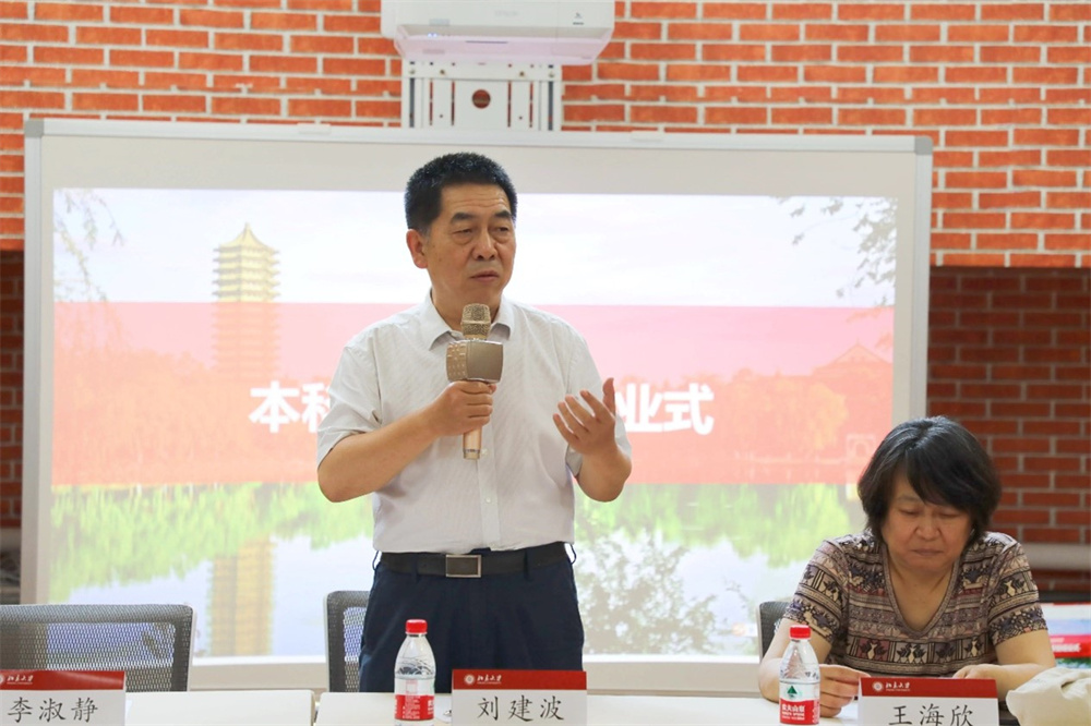 结业仪式首先由刘建波致辞。他向负责和参与外国语学院本科跨学科教育项目的教师表示了诚挚的感谢,老师们花费大量时间精心设计课程,做到了因材施教。外语将师生紧密地联系起来,为外语学习者打开了新的窗户,提供了跨文化交流的机会,在人与人之间搭建起交互和沟通的桥梁,外国语学院的跨学科项目在北京大学课程建设中起到了重要的作用。