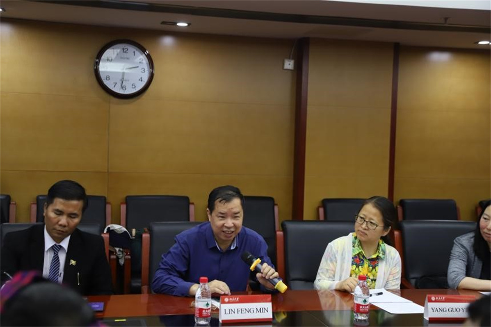 林丰民教授致欢迎辞,欢迎缅甸作家代表团来访我校,对代表团的各位作家、诗人、知名出版人致以诚挚敬意。林教授向代表团简要介绍北京大学、乐动在线中国官方网站的办学特色以及学科建设成就,期望借助此次活动与作家代表团共叙文学与友谊,促进中缅文学交流,推进北大缅语发展更上一层楼。