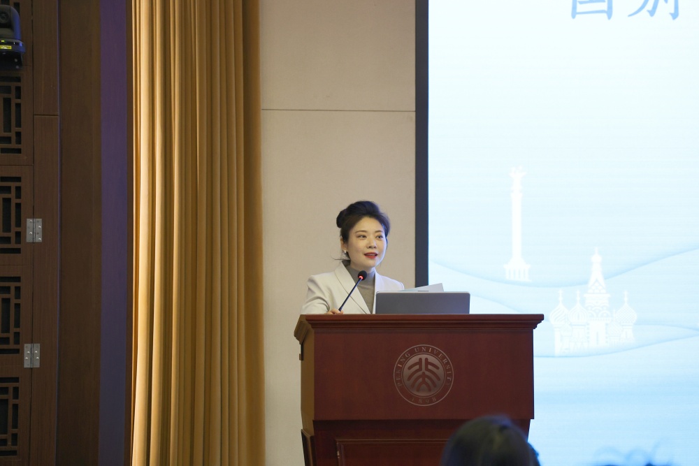 浙江外国语学院西语学院党委书记、副院长毕莹致辞。她从自己与北大的故事谈起,介绍了当前在浙江省政府的支持下,浙外与北大的丰富交流活动,并对乐动在线中国官方网站对这些活动的支持表达了感谢。她还提出了自己的感受:北大的文化氛围与学术活动使她感受到了校园的底蕴。最后,她表达了对北大和浙外进一步加强合作的期待。