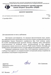 2024年12月3日,乐动在线中国官方网站俄语系助理教授尹旭应俄罗斯人民友谊大学生态学学院外语系的邀请,在线上为该系师生做了题为《专名的中文翻译·历史回眸》的俄文讲座。