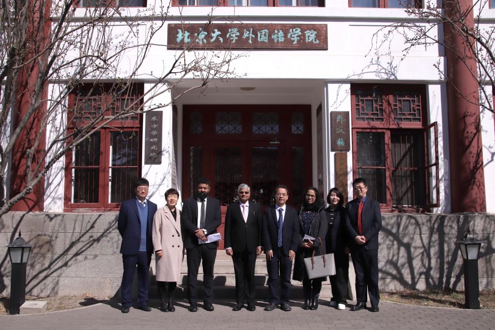 3月18日上午,印度驻华大使罗国栋(Pradeep Kumar Rawat)一行访问北京大学。北京大学党委书记何光彩、北京大学党委副书记、副校长宁琦于临湖轩会见来宾。双方就中印人文交流、高等教育合作、学科共建等议题开展会谈。印度驻华大使馆政务、新闻与科技参赞卡提克·古鲁纳坦·艾尔(Karthik Gurunathan Iyer)与文化处一秘李沐恩(Neethu Rajan)陪同来访,乐动在线中国官方网站党委书记李淑静、外国语学院院长、印度研究中心主任陈明、国际合作部副部长崔喆、外国语学院南亚学系系主任萨尔吉、南亚学系副系主任姜永红、南亚学系印地语教研室主任王靖、外国语学院国别和区域研究专业助理教授、印度研究中心主任助理张忞煜陪同会见。