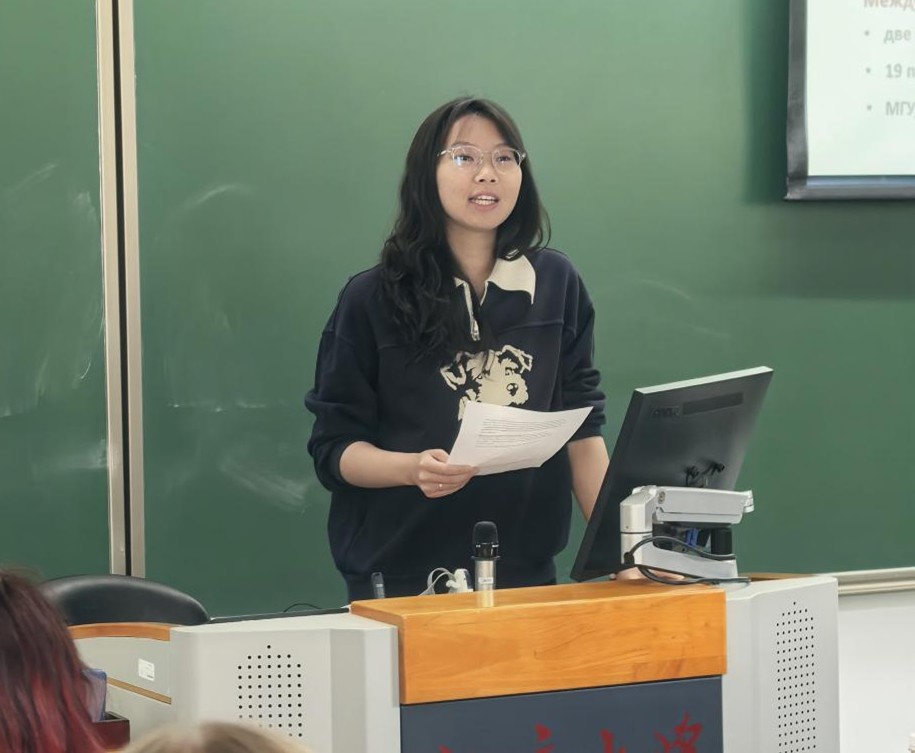 首先,北大俄语系学生代表李召依致开场辞,简要介绍了北大俄语系的历史与现状,分享了北大俄语系在中俄文化交流互鉴、两国人民友好往来进程中作出的突出贡献。随后,中、俄同学依次用对方的语言进行自我介绍,两国学生在和谐热烈的氛围中展现出优异的学习成果。