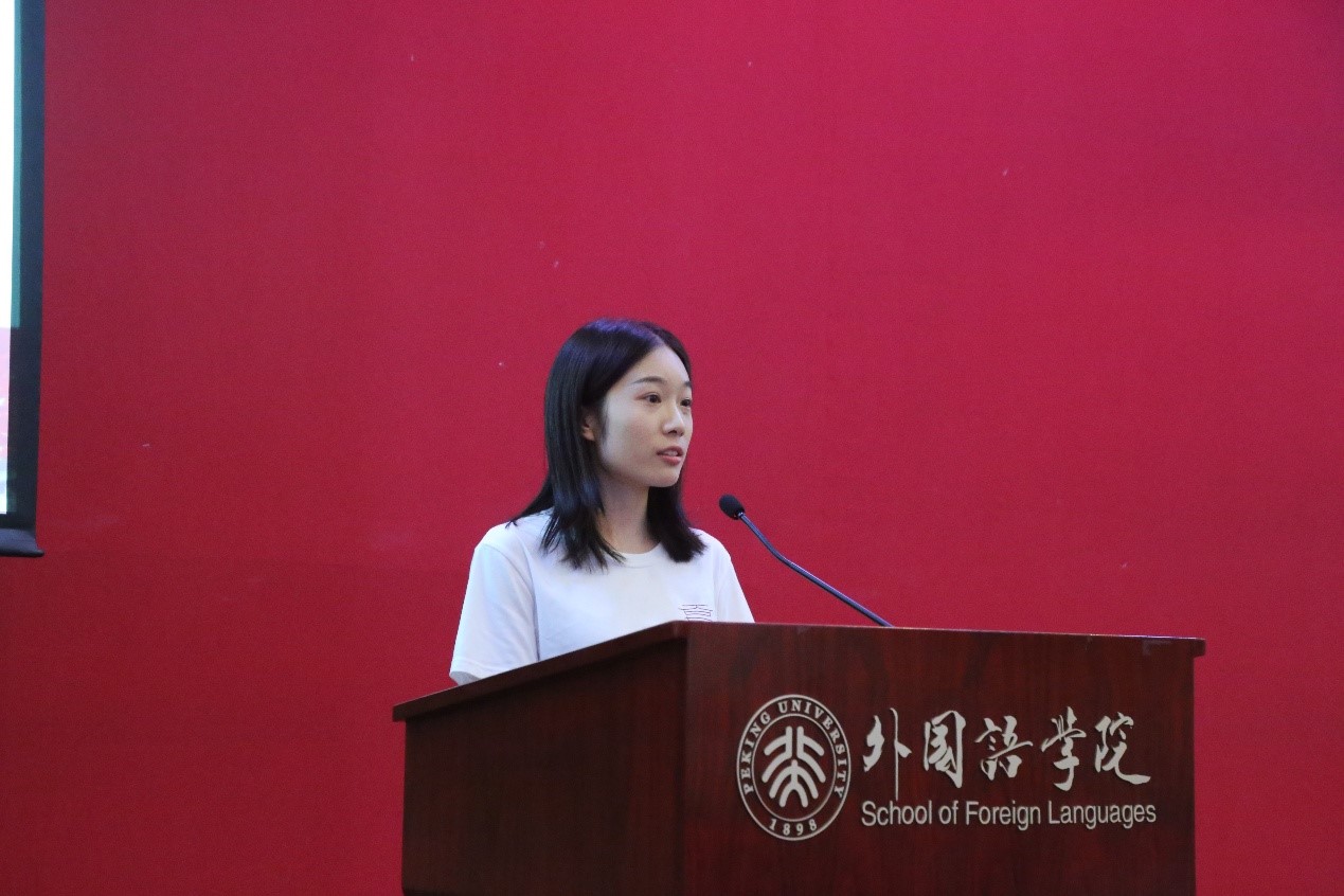 2015级西葡语系本科生张怡轩、2016级泰语专业硕士生夏康静、2017级阿拉伯语系博士生李睿恒与大家分享了在外院学习生活的心得体会。张怡轩表示,希望在座的每一位同学都能在专业学习的过程中获得全面成长的历练,在广泛发展的路途之中回归热爱语言文学的初心,讲好自己的“小故事”,更讲好国家与社会的“大故事”。 夏康静则为同学们带来了她对于“求真”、“力行”的思考,希望同学们能够秉持着求真的态度对世界文化进行探索,将所学所知身体力行地运用到实践中,努力成为连接中外的桥梁,为推动民心相通和构建人类命运共同体贡献一己之力。李睿恒分享了他对求学过程中的一些共性的问题和困惑的体验与思考,希望在坐的每一位学子都能保持信念,坚定地求学探索;认真地生活,承担起责任,成为有见识、有理想、守底线的社会人,将学术探究和社会贡献统一起来。