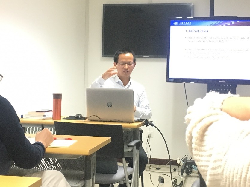 2018年11月23日,上海交通大学杨炳钧教授来乐动在线中国官方网站做语言学沙龙。杨教授的题目为《关于概念语法隐喻的完全体现原则:以名词化为例》(Full realization principle for the identification of ideational grammatical metaphor: nominalization as an example)。本次讲座由语言所副所长高彦梅老师主持。来自语言所和北京其他院校的硕博士研究生和进修教师到场聆听讲座。