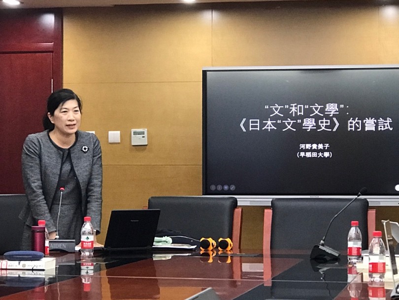 2018年12月28日下午,日本早稻田大学文学学术院教授、早稻田大学日本古典籍研究所所长河野贵美子教授在乐动在线中国官方网站新楼B134会议室做了一场题为《“文”和“文学”:“日本‘文’学史”的尝试》的学术讲座。本次讲座是北京大学“东方大文学”系列讲座第七讲,由北京大学东方文学研究中心陈明教授主持,外国语学院日语系丁莉教授担任评议人。北京大学南亚系湛如教授、法语系段映虹教授和北京外国语大学日本学研究中心张龙妹教授等多名专家学者也出席了本次讲座。