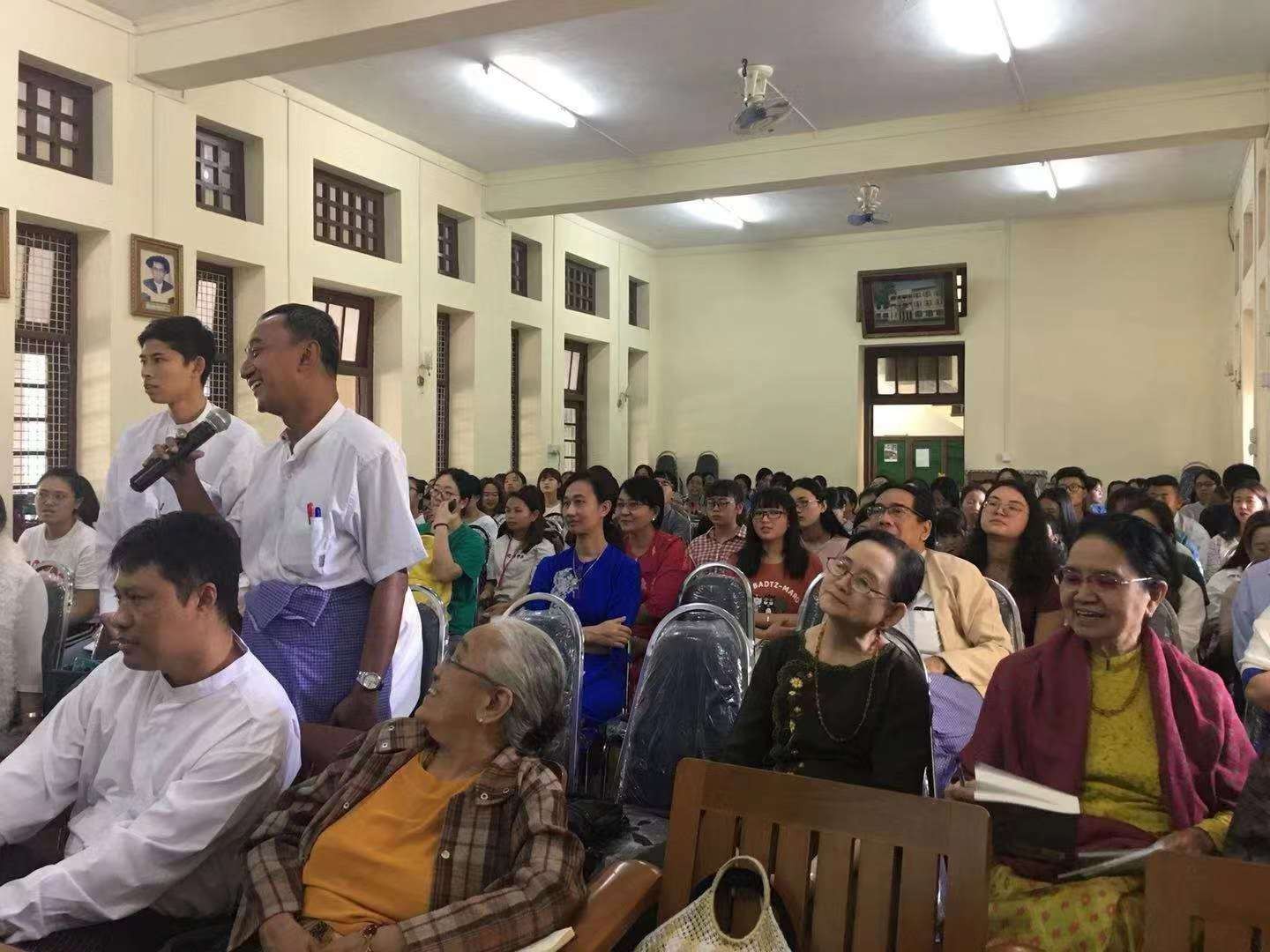 2019年1月20日—2月1日,我院缅甸语专业退休教师汪大年教授应邀对缅甸仰光大学进行学术访问。访缅期间,汪大年教授在仰光大学做了两场题为《汉藏语系研究中缅甸语的重要性》和《缅甸语方言研究之我见》的专题学术讲座,来自缅甸国家语言文字委员会的委员吴通丁教授和多位资深委员、以及仰光大学副校长吴昂敏吴教授、仰光大学缅文系师生、仰光外国语大学缅文系师生一百多人聆听了报告。美籍缅裔语言学家吴梭通教授和在韩国任客座教授的哥雷博士也专程从国外前来聆听讲座。汪大年教授和与会学者进行了热烈的讨论和交流。