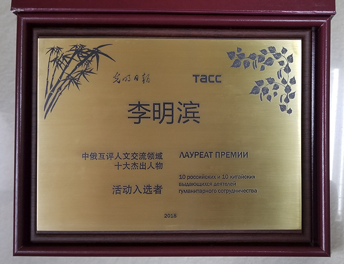 李明滨教授多年来致力于中俄两国文化传播和交流,长期从事俄罗斯文学、俄罗斯国情学与中俄比较文学的教学和研究,主要著作有《中国文学在俄苏》、《中国文化在俄罗斯》、《中国与俄苏文化交流志》、《俄罗斯文化史》、《俄罗斯文学史》、《俄罗斯汉学史》、《中国文学俄罗斯传播史》、《俄罗斯文学的灵魂——托尔斯泰》等,主编高校教材《苏联概况》、《独联体国家文化国情》等。目前主编《俄罗斯汉学文库》30卷,北京大学出版社已出版8卷。李明滨教授曾多次获国家级、省部级和校级优秀学术成果奖,荣获国务院颁发的政府特殊津贴,并荣获俄罗斯联邦政府颁授的普希金奖章和俄方颁发的俄中友谊奖章及高尔基奖状,以表彰他在研究、翻译和传播俄罗斯文学和文化,以及在中俄两国文化交流领域所作出的杰出贡献。