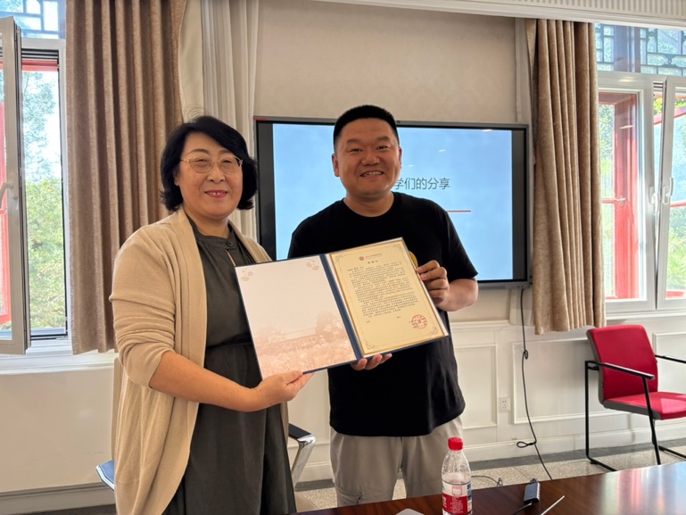 外国语学院党委副书记张冬梅为董峰颁发感谢状