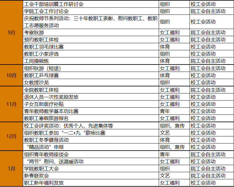 会议下发了《2019-2020学年外国语学院工会工作计划》,学院工会在配合学校工会完成“规定动作”之外,积极开展很多深受教师喜爱的“自主活动”,例如涵盖在职和离退休教师的春秋游、各种节日的慰问、组建文体社团、组织青年教师座谈会、召开学院教职工大会、举办新春联欢会等丰富多彩的活动。在活动中,各位工会委员各司其职,亲密配合,提前规划,通力协作,全力打造外院工会一个又一个精品活动。