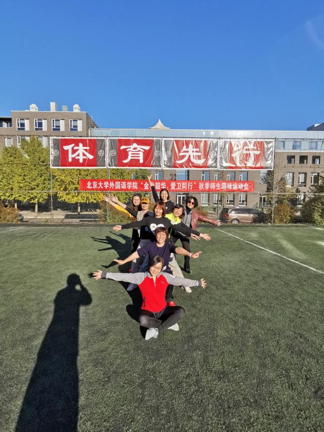 10月23日下午,外国语学院“弘扬伟大抗疫精神,践行爱国卫生运动”工会活动之“金秋韶华,爱卫同行”秋季师生趣味运动会在第一体育场北侧足球场举行。外国语学院工会主席张冬梅、工会常务副主席倪丽慧、体育委员李宁、宣传委员张一宁、女工福利委员潘桂英带领120余位师生参与比赛。大家斗志昂扬,活力四射,齐心协力地完成了所有的比赛项目,充分展现了外院人的活力与风采。外国语学院副院长付志明、院党委副书记王恒一同参与活动。