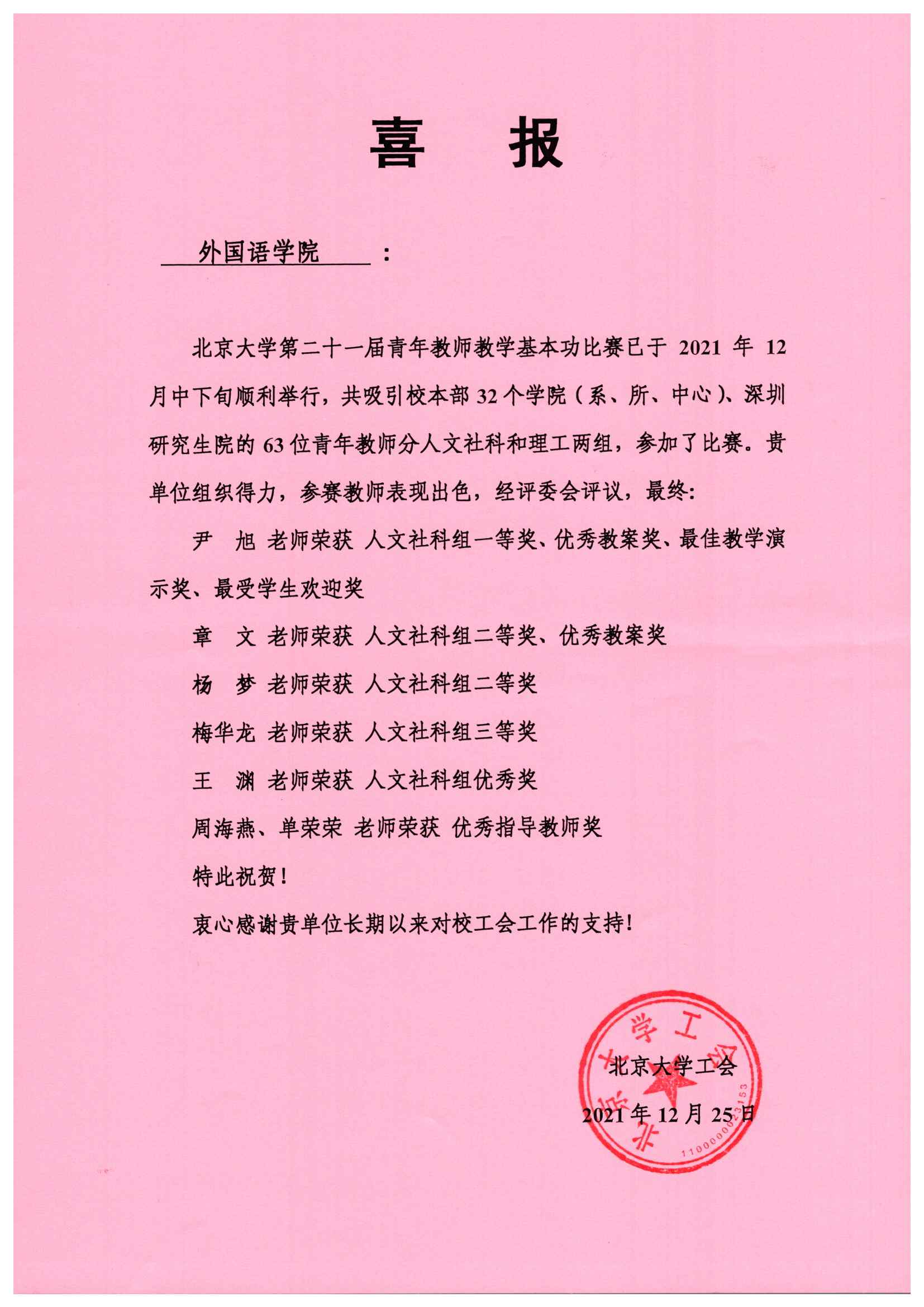 喜报:外院教师在第二十一届青年教师教学基本功比赛中取得佳绩