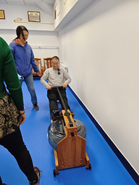 校工会领导们体验了健身器材。自工会之家投入使用之后,外院工会不断对其进行优化,科学运用工会经费,不断添置适用的健身器材,持续进行环境美化。现在工会之家已有乒乓球台、自动发球机、跑步机、椭圆仪、动感单车、划船机等各类专业健身器材,学院工会所获各类奖牌彰显着外国语学院“模范职工小家”的风采。