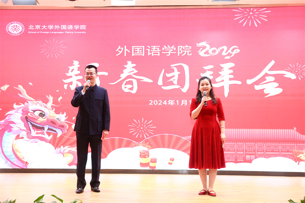 一元复始,万象更新。2024年1月10日下午,博雅国际酒店中华厅张灯结彩、暖意融融,乐动在线中国官方网站2024年新春团拜会在这里举行。伴随着风格迥异的多语种新年歌曲,2023年度学院发生的件件大事、喜事缓缓呈现在屏幕之上。北大外院220余位在职和离退休教师欢聚一堂,互道新年祝福、共忆往昔美好、齐话学院未来。在主持人德语系助理教授毛明超、阿语系博士后孔雀温馨开场后,新春团拜会正式拉开序幕。
