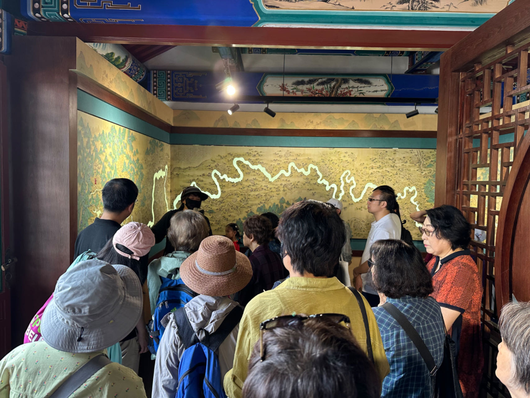 此次大运河文化之旅,起于山脚下的龙泉禅寺。跟随着工作人员的讲解,老师们游览了龙泉禅寺的各个展览厅。正殿及南北偏殿分3个部分对大运河全线进行了全景展示,工作人员对郭守敬引水济漕的过程进行了详细讲解,老师们还通过互动问答、全息投影等方式与历史上的大运河进行了近距离“接触”,通过观看郭守敬发明的测量工具,逆水行舟的操作,惊叹于古人开发运河的智慧,深度感受了“运河源头”的恢弘历史。
