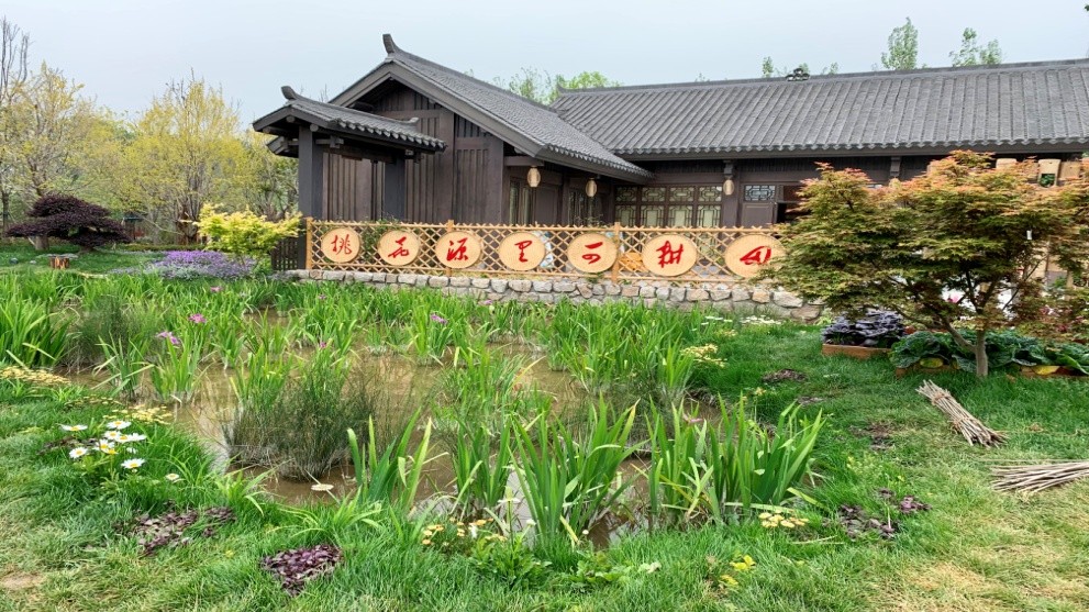 入口处为写有“湘遇桃花源”5个大字的“ 武陵山石”,这里立着张家界武陵石假山。穿过假山,豁然开朗,象征着美丽的洞庭湖的小湖---“洞庭春晖” 呈现在眼前,湖面上还停泊着一叶孤舟,令人想起“野水无人渡,孤舟尽日横”的著名诗句。沿着湖边,向前漫步,进入“桃源寻梦”,只见水光山色、轻雾缭绕、仙气飘飘,仿佛置身于桃花仙境。出“桃源寻梦”, “山、水、林、田、湖”扑面而来。继续沿湖而行,穿过紫薇花廊构筑而成的“湘帘紫雨”,湘妃竹、桂花、芙蓉花、杜鹃、湘莲、紫薇、玉兰等湖南特色的花卉植物渐次映入眼帘。最后来到“湘园居”,一排竹子篱笆上赫然写着毛主席诗词:“桃花源里可耕田”,把人们对安逸美好生活的向往诠释得淋漓尽致。