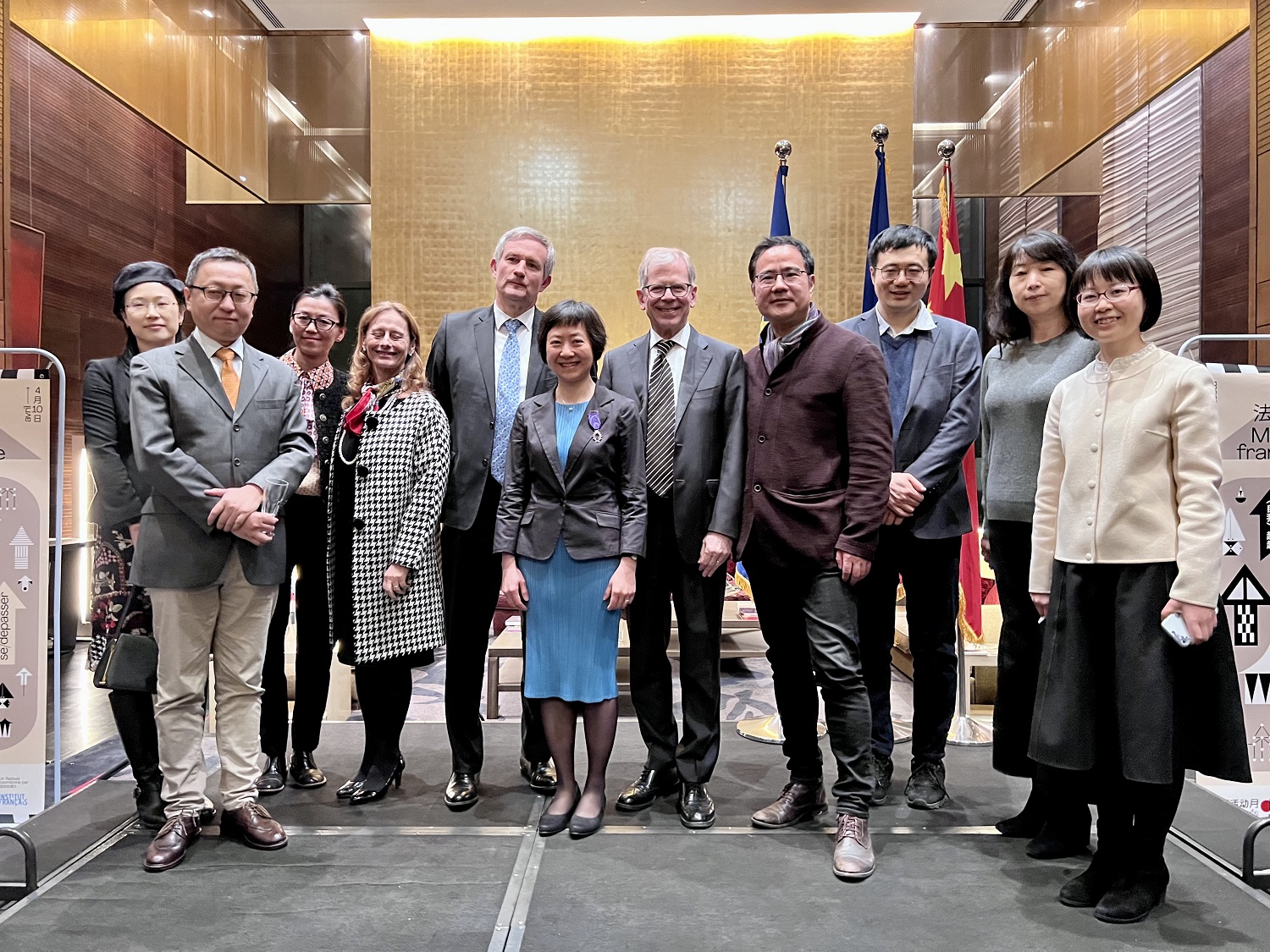 罗梁大使在授奖致辞中盛赞段映虹老师多年来在中国推动法国文学研究和中法思想交流上投入的巨大精力。她是著名的尤瑟纳尔研究专家,国际尤瑟纳尔研究会(SIEY)理事会成员,翻译了《苦炼》《东方故事集》等经典作品。她担任北京大学法国文化研究中心(Centre Etiemble)主任,组织编辑出版“法兰西思想文化丛书”,在致力于法语教育与推广事业、帮助许多中国青年学子探索学习法语语言和文化的同时,也成为年轻一代教师和学者的榜样。