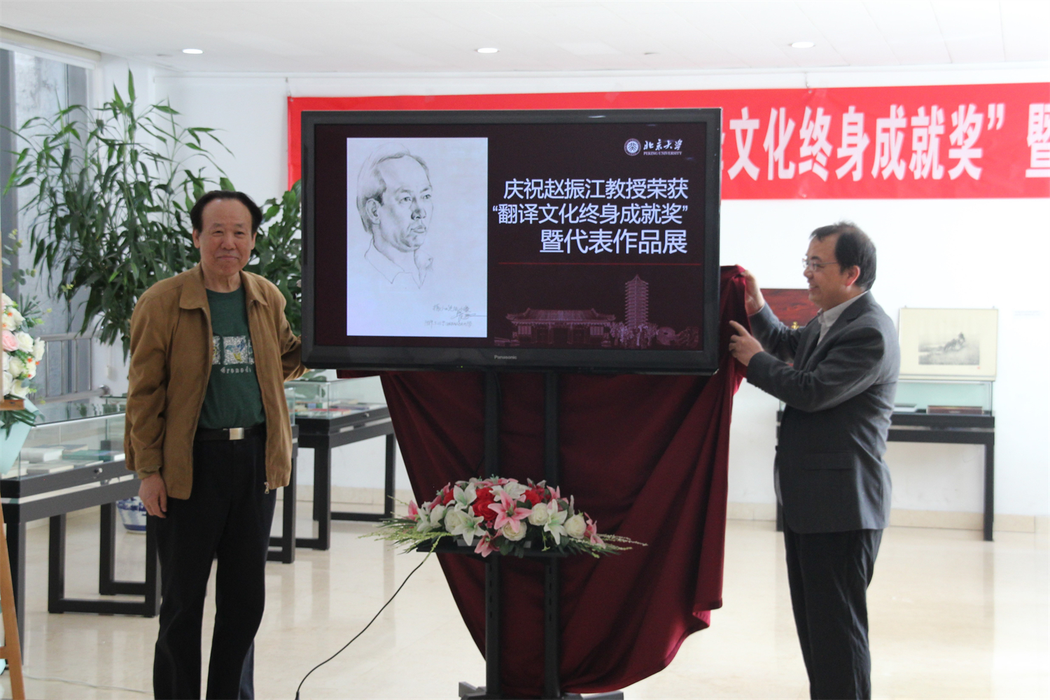 赵振江教授和外国语学院院长陈明教授共同为展览揭幕