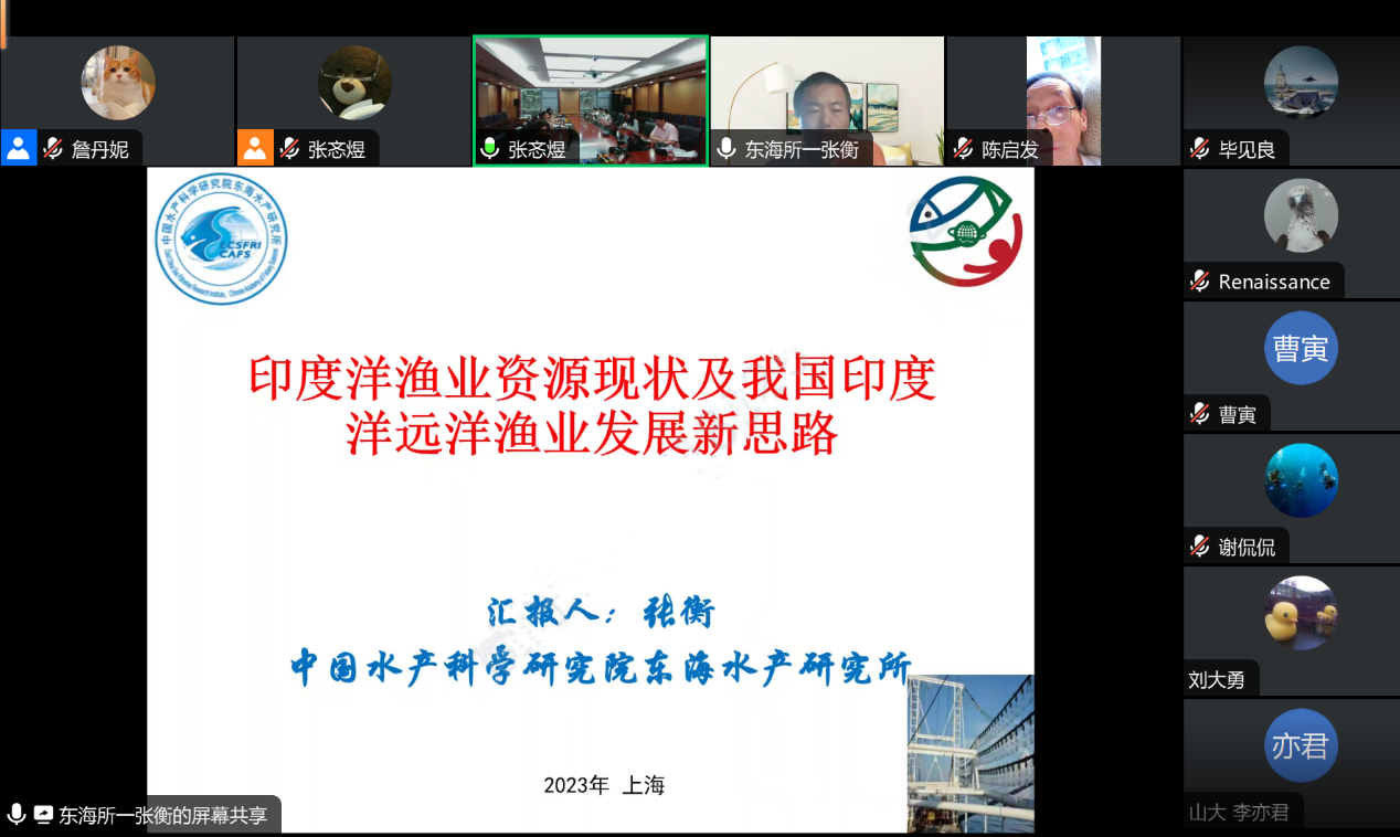 2023年6月8日,中国水产科学研究院东海水产研究所副研究员张衡老师应邀为我院师生进行题为“印度洋渔业资源现状及我国印度洋远洋渔业发展新思路”的讲座。本次讲座属于“当代中国与印度洋地区”系列讲座,由乐动在线中国官方网站国别和区域研究专业、亚非系和东南亚系主办,乐动在线中国官方网站张忞煜助理教授主持,清华大学历史系曹寅副教授和北大外院谢侃侃助理教授参与讨论。本次讲座在外院新楼B134会议室和线上平台同步举行,吸引了相关部门和国内外高校的百余名师生在线参与讲座。