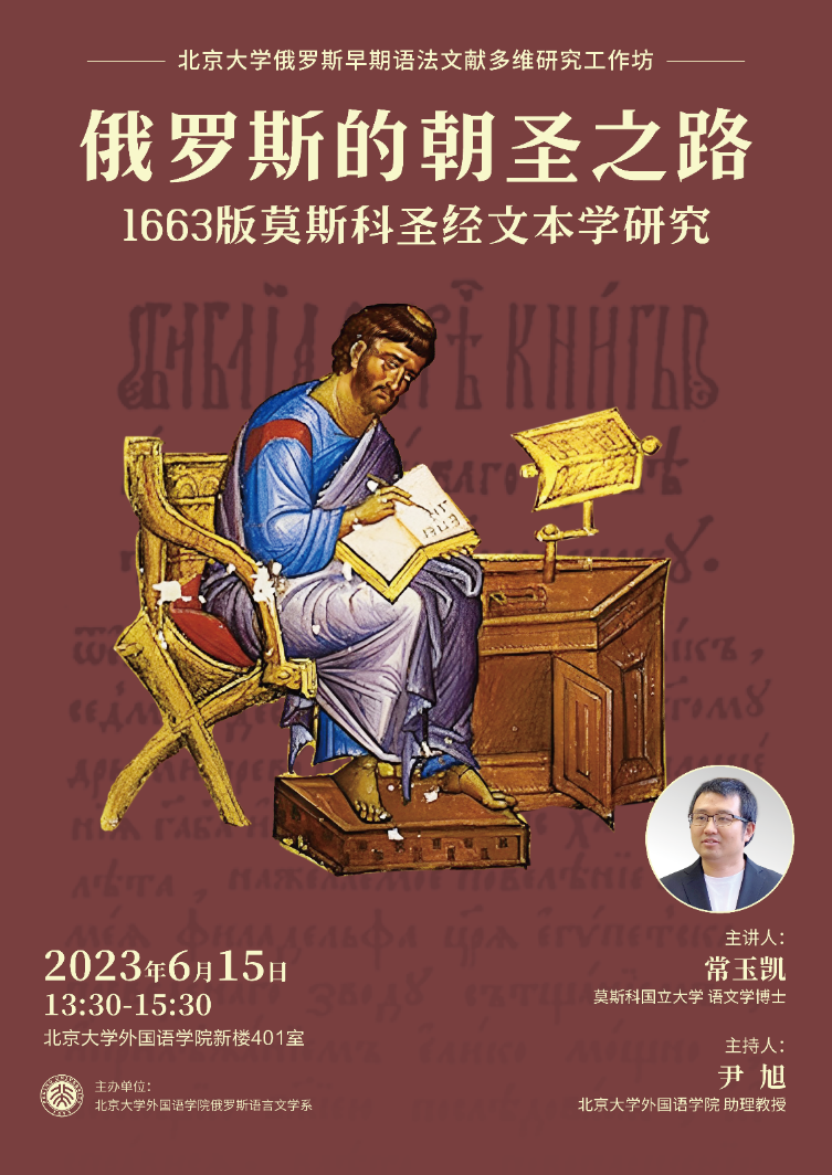 2023年6月15日下午,乐动在线中国官方网站俄语系在外院新楼401会议室举行“俄罗斯的朝圣之路:1663版莫斯科圣经文本学研究”专题讲座,莫斯科国立大学常玉凯博士担任主讲人。北京大学外国语俄语系陈松岩主任、周海燕副主任、赵桂莲教授、查晓燕教授、陈思红老师、鲍红老师、历史学系庄宇老师、北京师范大学李凯教授,以及来自北京多所高校的20余名师生参与本次讲座。讲座由国家社会科学基金青年项目“俄罗斯早期语法文献的多维研究”主持人,乐动在线中国官方网站俄语系助理教授尹旭主持。