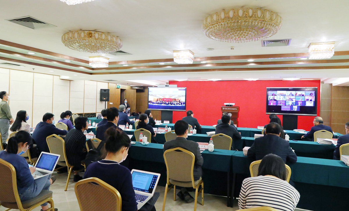 宁琦介绍了有关文献资料的翻译情况。疫情发生以来,外国语学院充分发挥多语言专业优势,组织多语种志愿团队,承担文本翻译、口语翻译以及线上线下多语种应急语言服务,与世界各国分享中国抗疫经验。