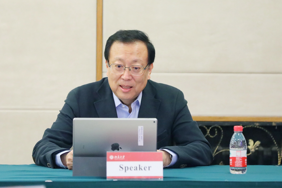 詹启敏从一线抗疫、科研攻关、公共卫生管理、校园防控、智库工作等方面介绍了北大医学部在中国抗击疫情中所做的工作,并表示,未来北大医学愿与阿拉伯国家继续守望相助、携手应对、合作抗疫、成果共享。