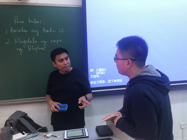 3月5日这天,同样的一句话通过不同的语言在燕园的许多教室里传出。外国语学院的同学们充分利用上课和课间时间,向来自国外的老师们、同学们讲述雷锋的故事。通过与外国教师的交流,同学们发现,不仅中国,世界上的许多国家都有着自己的“雷锋”。至此,同学们对雷锋精神的认识又一次加深了——雷锋精神不是某一个人或某一个国家独有的,而是世界性的,因为雷锋精神体现着人类求真、向善、助人的共同特征。