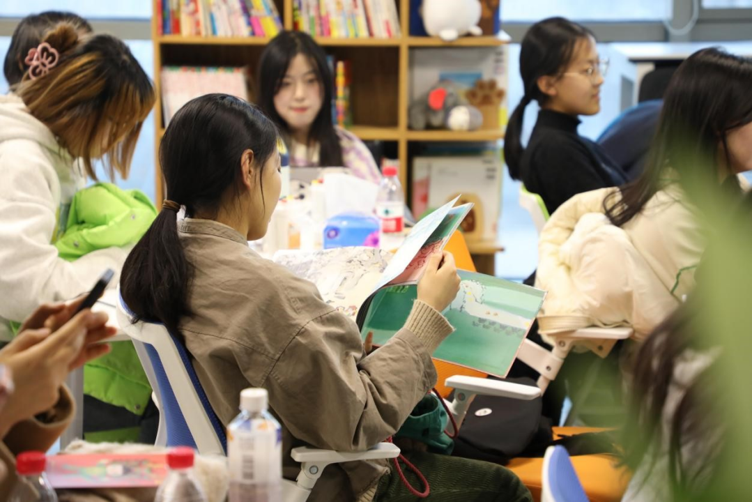 蒲蒲兰的工作人员还精心准备了一堂生动有趣的绘本课,以《汉娜的惊喜》等深受孩童喜爱的绘本为教材,让同学们跨越年龄的界限,重新找回那份童年的纯真。在这个过程中,同学们细致感受绘本的故事性,强烈的代入感使大家得以穿越时光,回到童年,以童稚的视角重新思考这个世界,并体悟绘本带给世界的意义和价值。