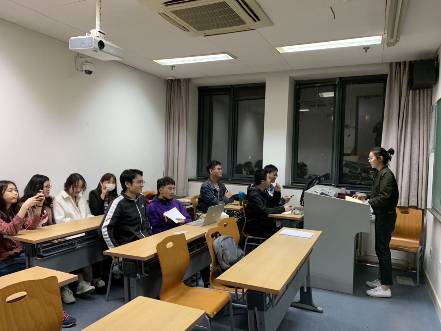 2019年4月18日20:40,外国语学院2018级法语专业本科生班在四教407举办“学规矩、讲规矩、守规矩”主题活动,2018级法语专业所有本科生均参加了班会,学习活动由班长宋若瑾主持,辅导员李涛为同学们宣讲校规校纪。
