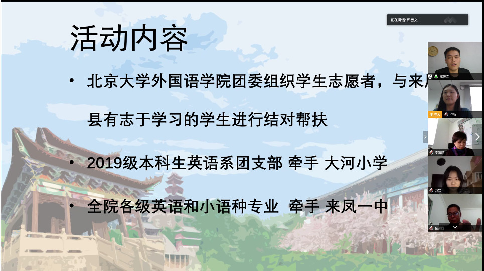 外国语学院与湖北省恩施州来凤县共同举行“千言万语同学习,燕园来凤共成长”线上陪伴活动启动仪式暨志愿者培训会