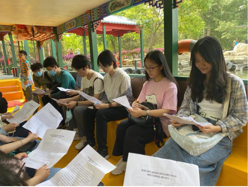 为庆祝中国共产党成立一百周年,外国语学院2020级朝鲜语系本科生团支部于2021年5月22日前往圆明园,以“回望历史,立足当下”为主题开展团日及主题教育活动,深入学习了习近平主席在治国理政方面的重要讲话。活动过程中,支部同学不仅探访见证了中国近代斗争历史的皇家园林圆明园,并且在游览途中听取了由支部同学精心准备的一堂党课,根据习近平主席对与中国梦与人类命运共同体的系列论述,以专业为依托,深入探讨了新时代青年人的责任与担当。