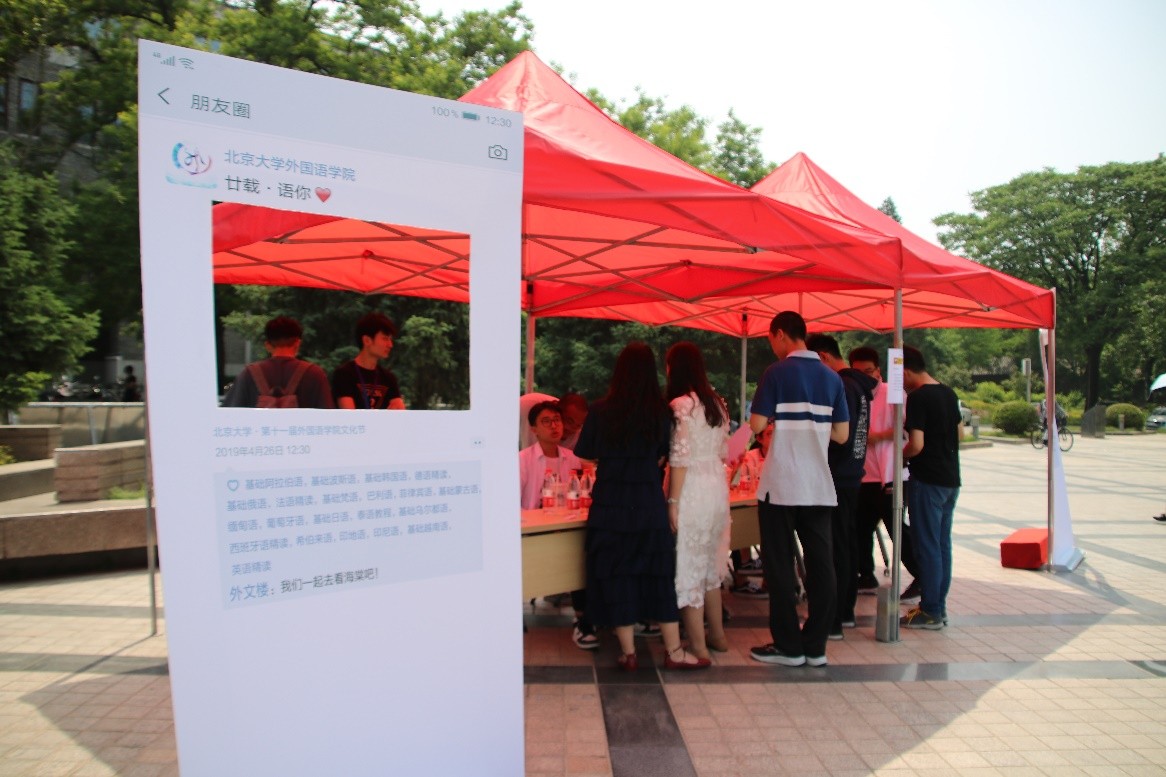 2019年5月10日,“廿载·语你”第十一届乐动在线中国官方网站文化节“情深深,语萌萌”文化日在北京大学百周年纪念讲堂广场成功举办。文化日由乐动在线中国官方网站学生会主办。来自外院的同学们通过文艺汇演、搭建照片墙、举办美食汇、答题赢周边等多样形式庆祝文化日,吸引了来自北京大学各个院系的师生积极参与活动。