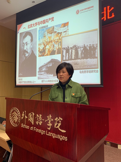 李老师首先为大家分享了她自己眼中的中国和中国共产党。李老师曾经三次参与国庆群众游行方阵,分别是在新中国成立35周年、60周年和70周年的庆典,这重要的三个节点,不仅反映了李老师在北大成长成熟的心路历程,更映照着我们党和国家在不同时期的不同的面貌、同样的初心。李老师回忆道,1984年第一次参与游行时自己只是个初入燕园的18岁学生,国庆当天经过天安门城楼前,同学们在没有事先排练的情况下,突然打出了用床单和蚊帐杆做的“小平您好”的条幅,震惊中外。李老师说,“那时候的训练并不像现在军训这般严格,虽然那个夏天也一样骄阳似火,但我们很快乐,这种快乐源自于我们发自内心地期待能为新中国庆祝35岁生日,庆幸自己能参与到这一全国人民的盛会中。” 那年国庆之后,李老师向党组织提交了入党申请书。