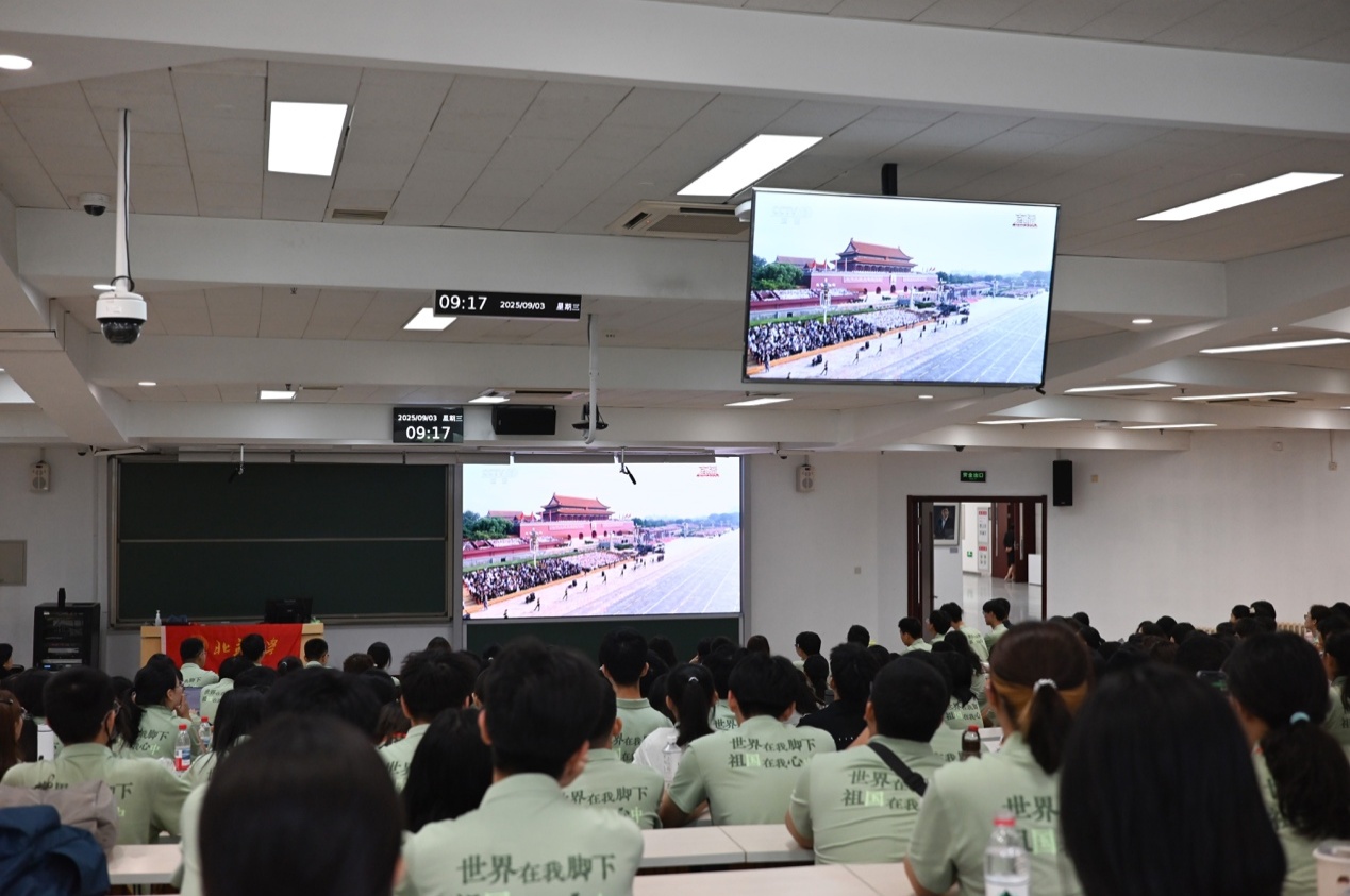 外国语学院组织师生集体观看纪念中国人民抗日战争暨世界反法西斯战争胜利80周年大会