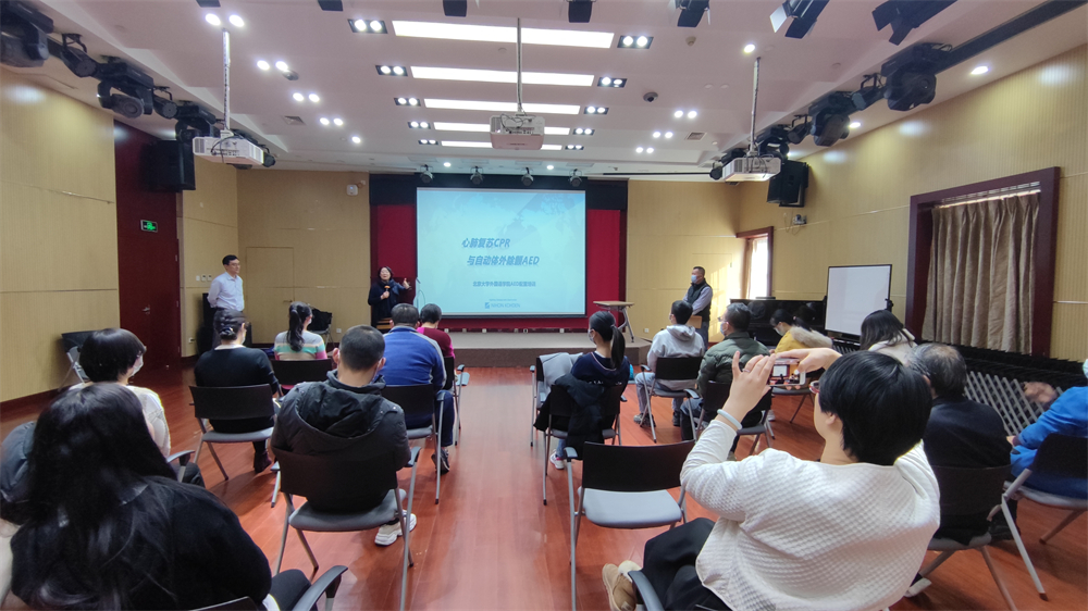 培训开始前,张冬梅副院长介绍了此次培训的意义。在公共场所配备必要的急救设备,是国家建立健全突发事件卫生应急体系的需要,正在成为检验城市文明水平和基础设施是否完备的新标尺。学院一向高度重视安全问题,本学期购置了自动体外除颤仪(以下简称AED),放置于外院新楼一层大厅。心肺复苏术、AED操作方法都是普通人通过培训可以掌握的,开展急救培训,提高相关人员对急救术的掌握率,是争取黄金抢救时间的可行之法。本次特别邀请专业团队带来心肺复苏、AED使用的技能培训,希望大家高度重视、认真学习,增强公众急救意识,掌握急救技能,在紧急关头为学院师生提供切实的帮助。