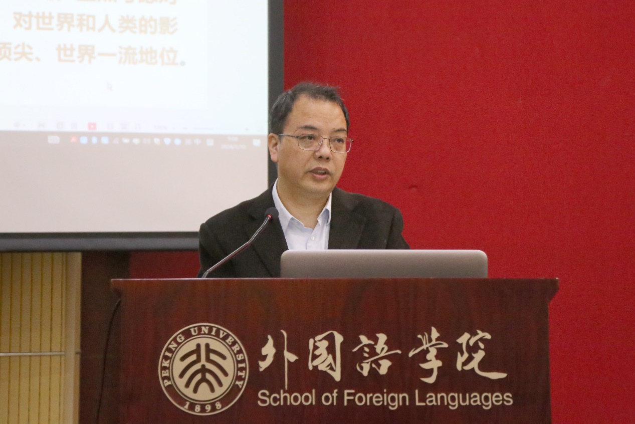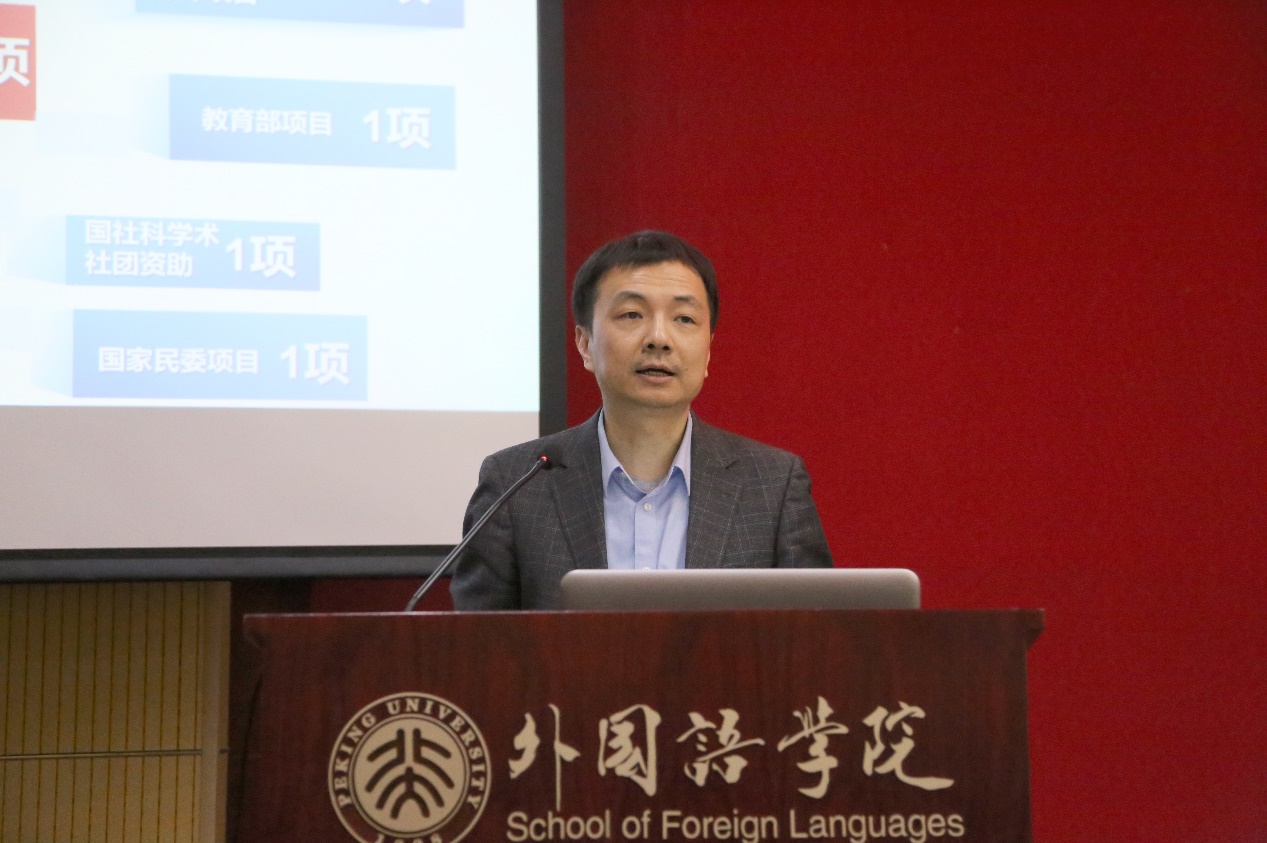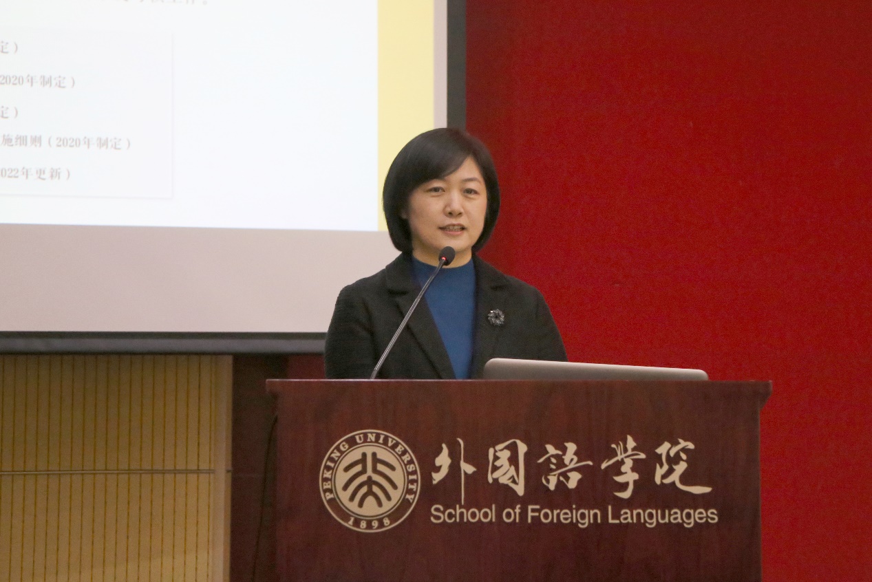 副院长付志明作本科教学、外事工作汇报。在外院全体教师的共同努力与积极配合下,本科教育教学任务顺利完成,在本科教学改革中取得了许多成绩。学院不断打造内容丰富的本科生专业选修课程,提升本科生学术能力。完善加强课程思政建设,推进“外语应用与劳动实践”课程,引领学生树立正确的劳动观念。外事工作方面,学院充分发挥外语学科优势,助力北大国际传播能力建设。引导外籍教师响应“一带一路”倡议,深入参与学科建设和文化交流工作。开展近50场海外学者学术交流,丰富了北大学术生活。